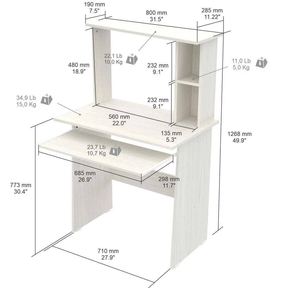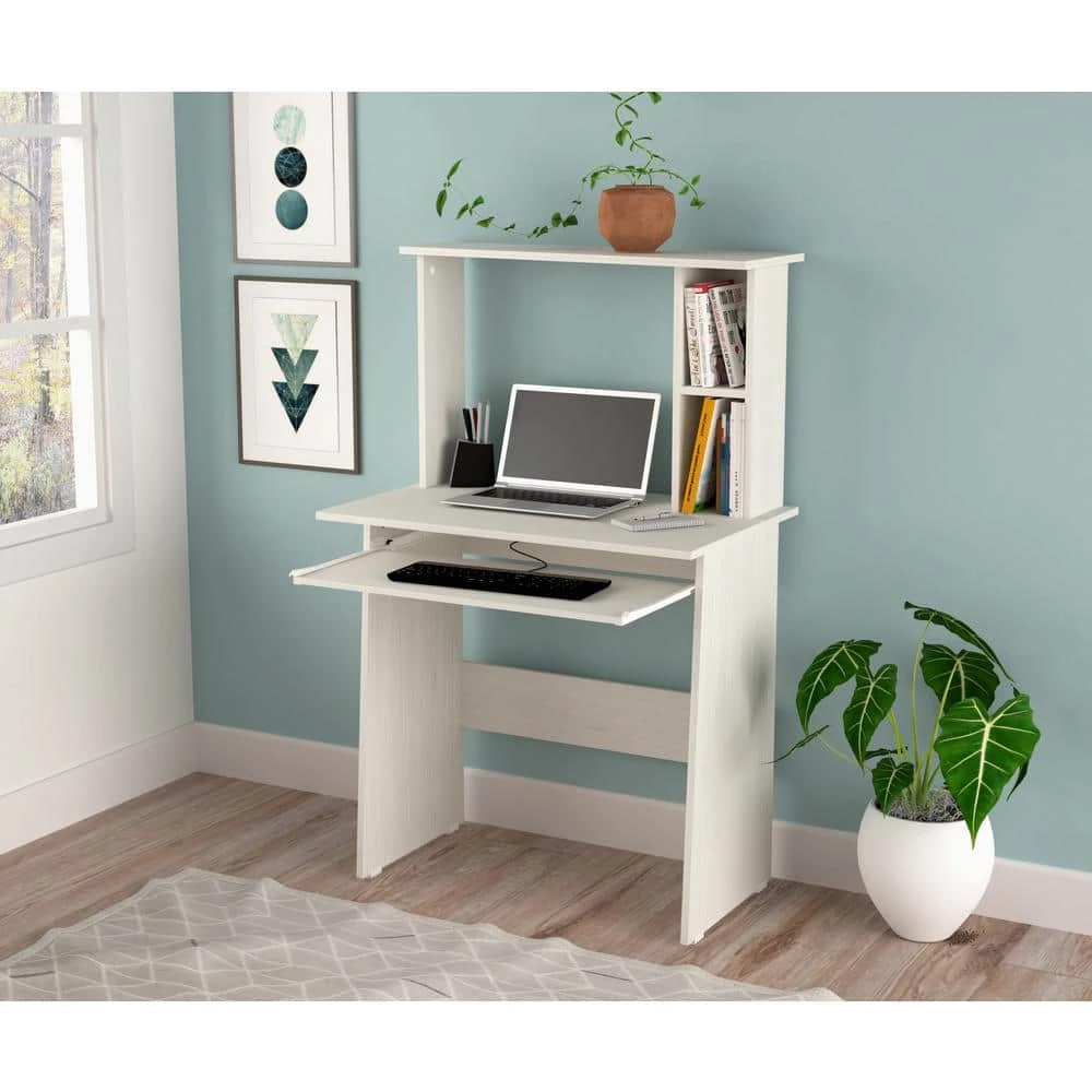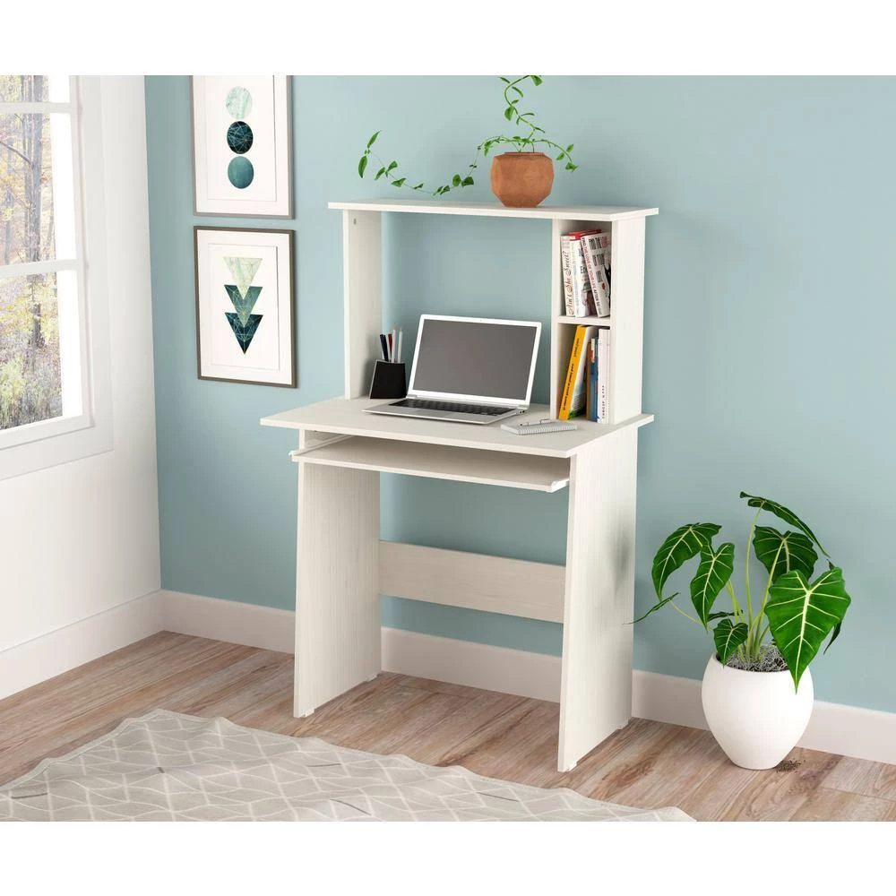 Computer Work center w/Hutch by Inval finished in a rich “Washed Oak” laminates. This unit offers an ample work surface and open storage area. It features a slide-out keyboard tray designed to hold a computer keyboard and mouse. The hutch provides ample space for storage. Constructed from manufactured wood laminated on both sides with durable melamine which is stain, heat and scratch resistant. Assembly required.