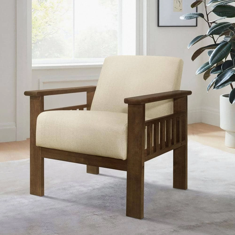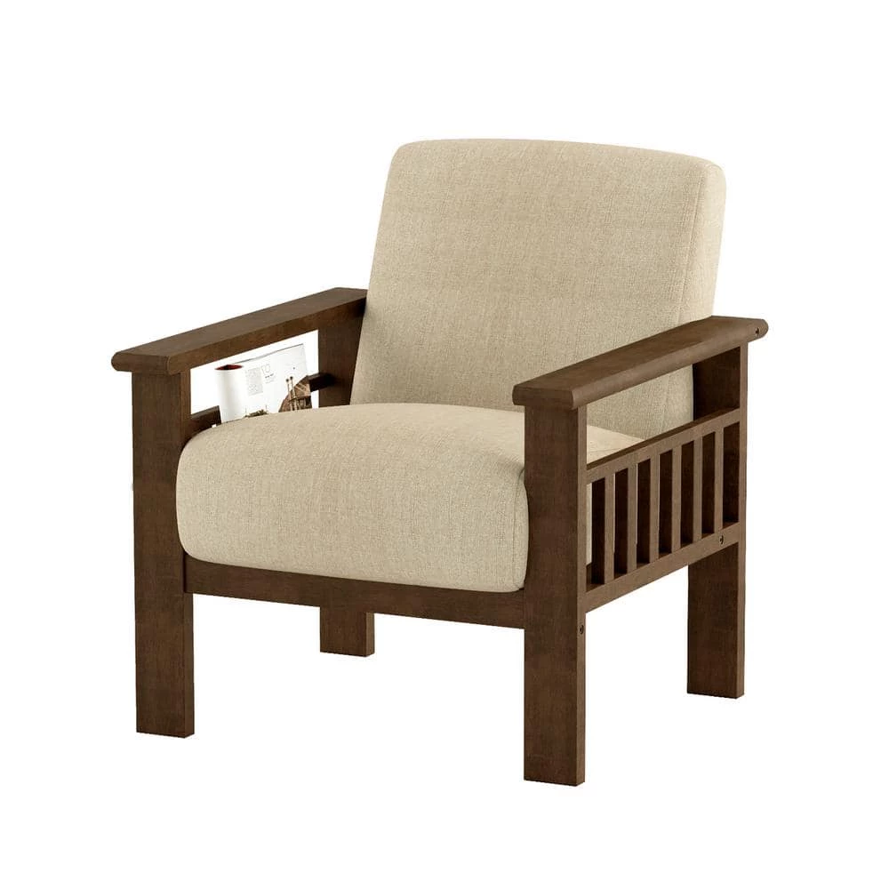 Amerllia Light Brown Fabric Upholstery Solid Wood Accent Chair by EVERGLADE HOME