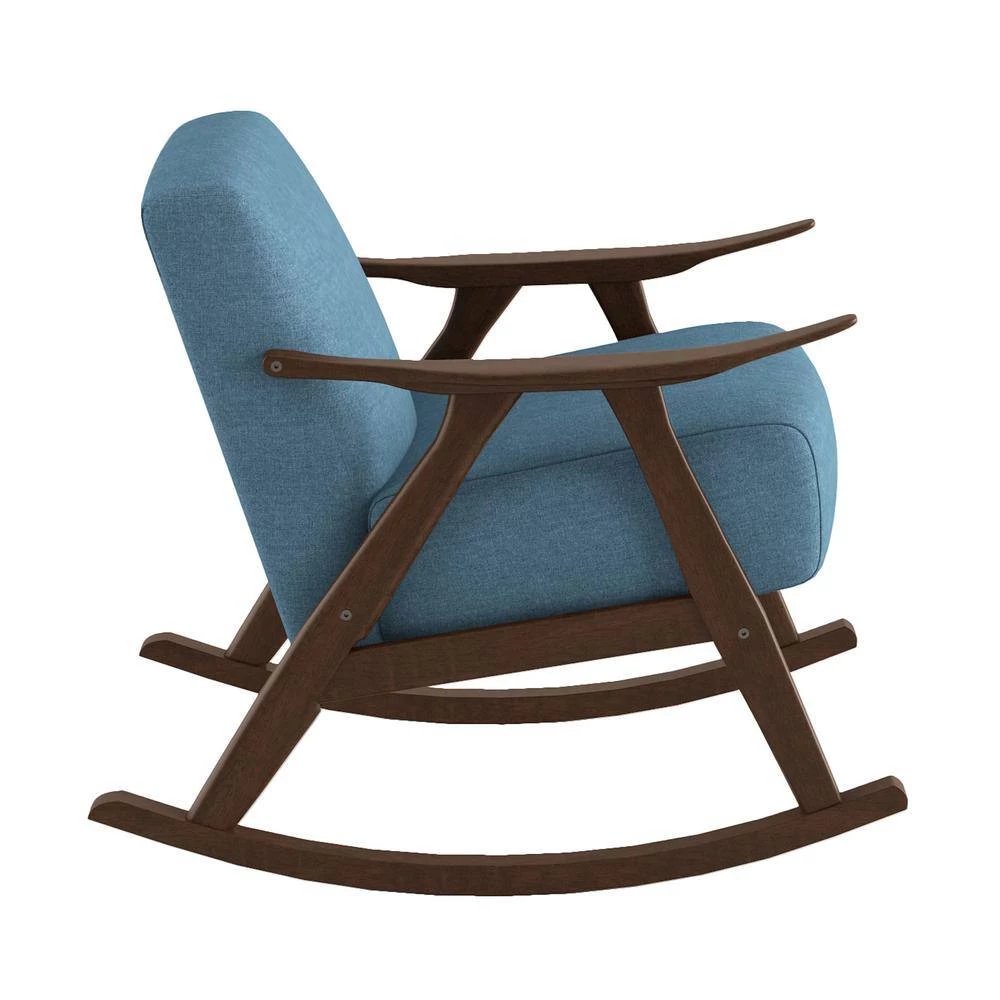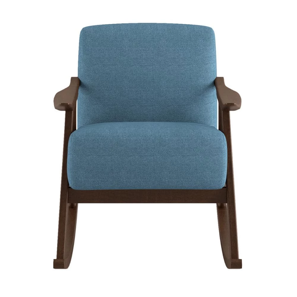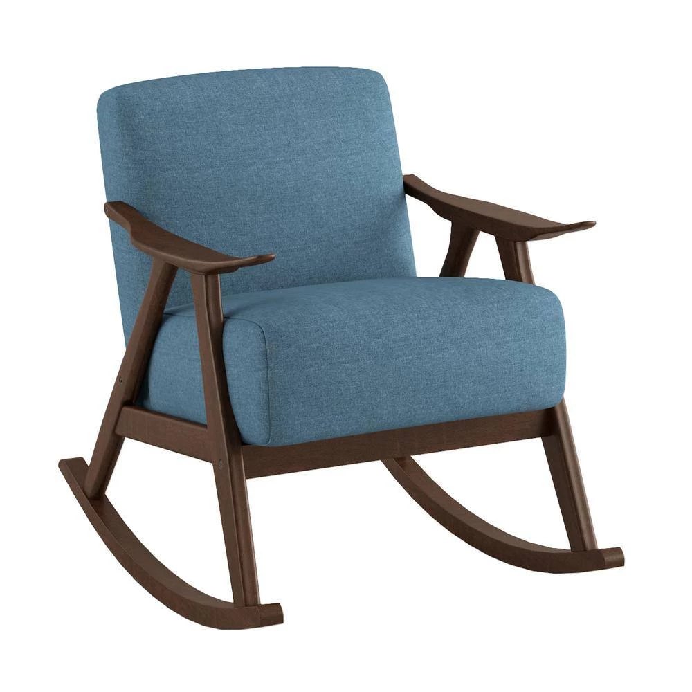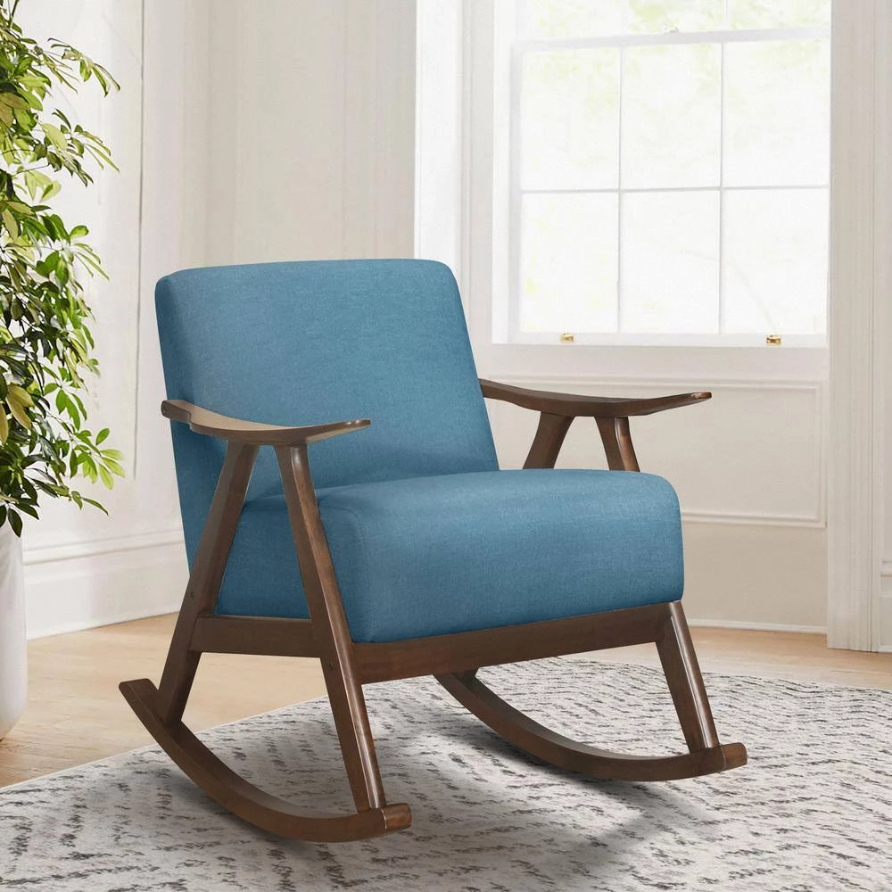 Bracco Blue Mid-Century Fabric Upholstery Solid Wood Rocking Chair by EVERGLADE HOME