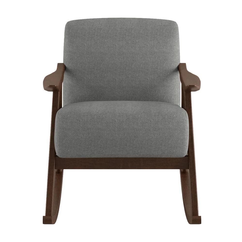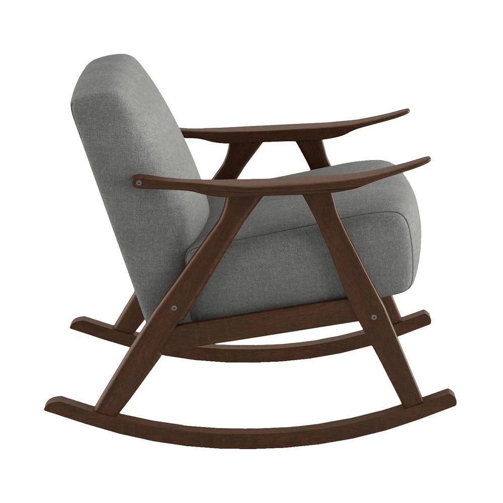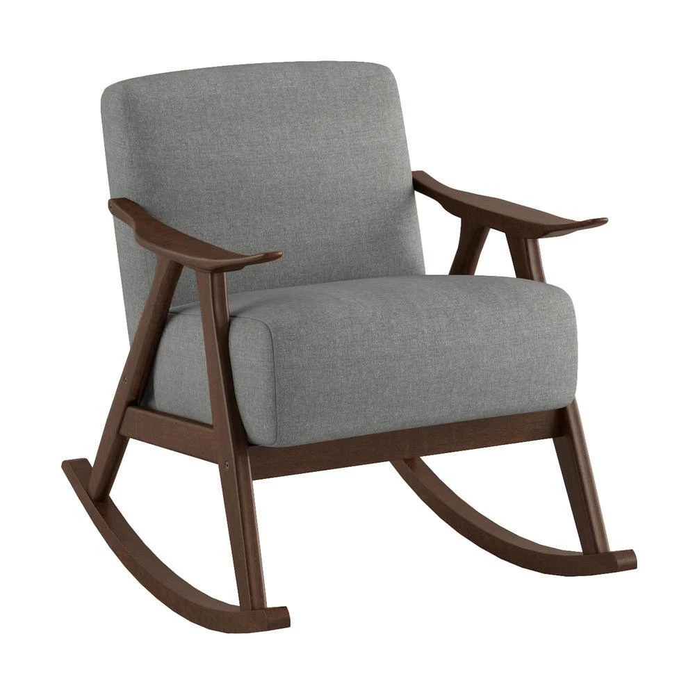 Bracco Gray Mid-Century Fabric Upholstery Solid Wood Rocking Chair by EVERGLADE HOME