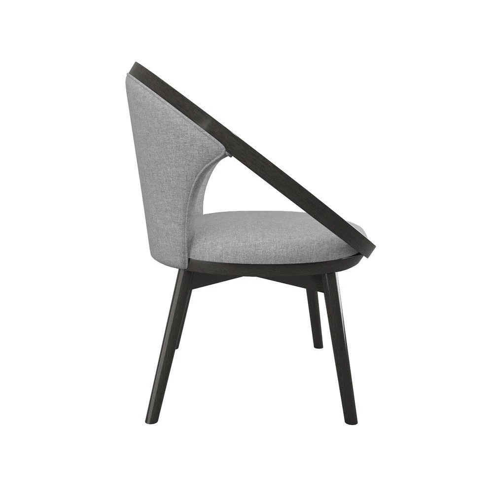 - Exposed wood frame with dark charcoal finish