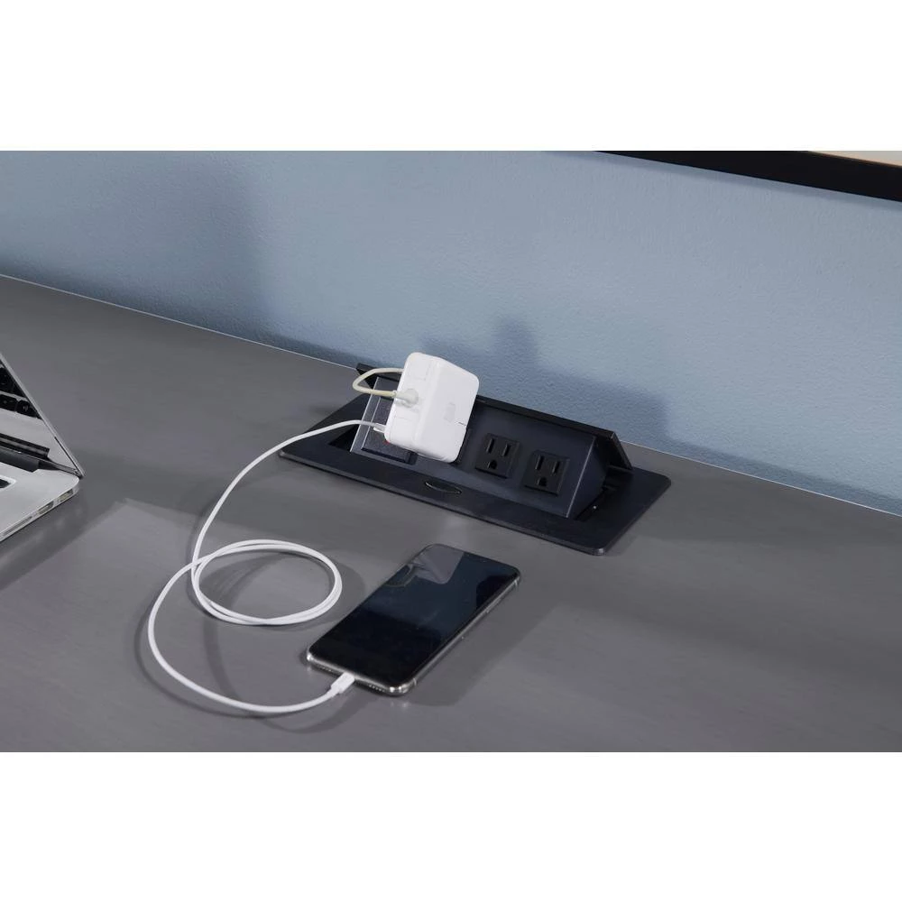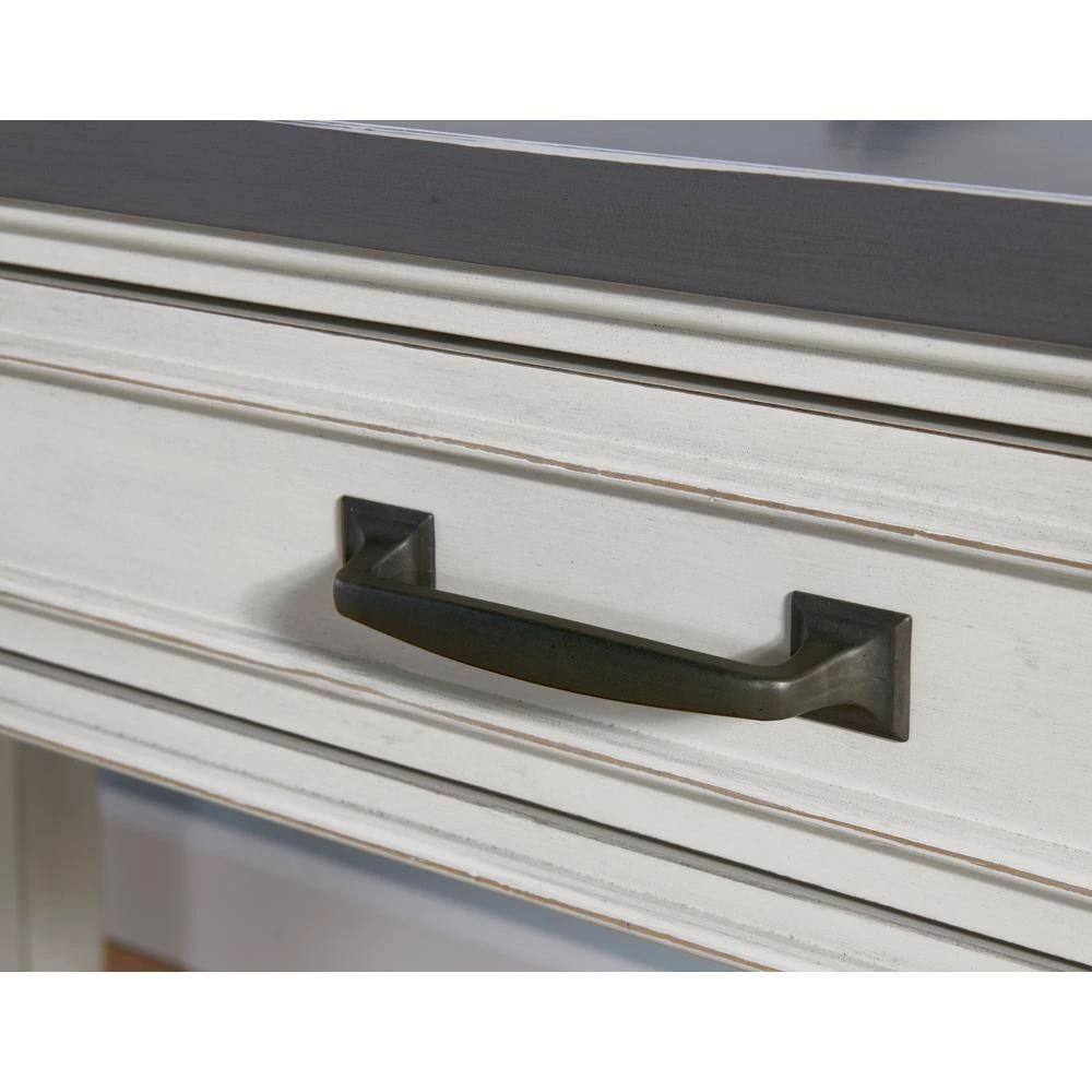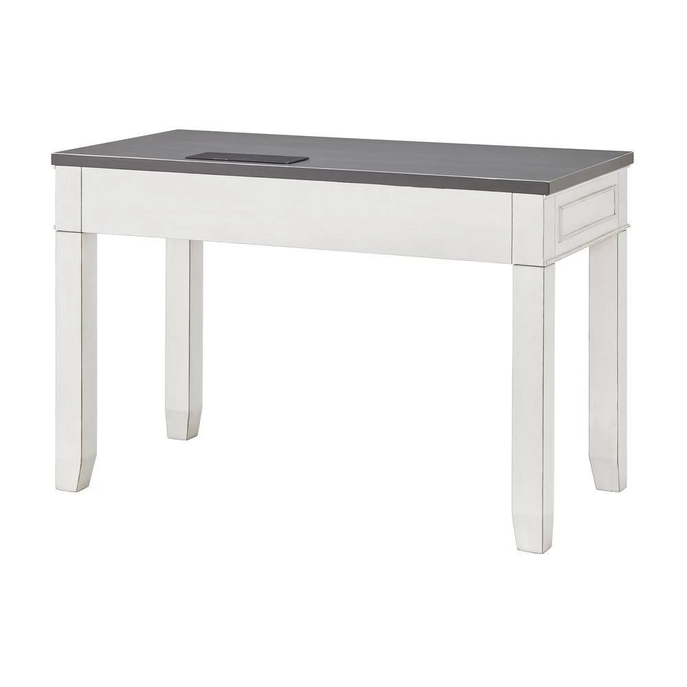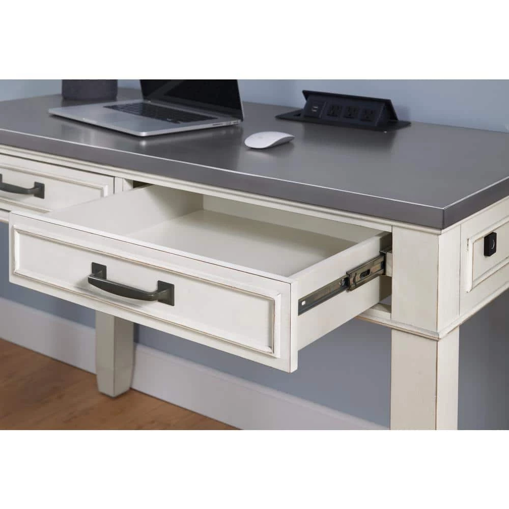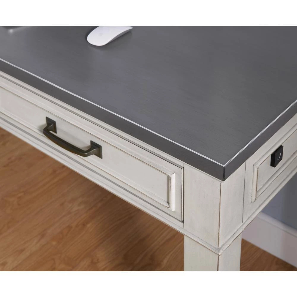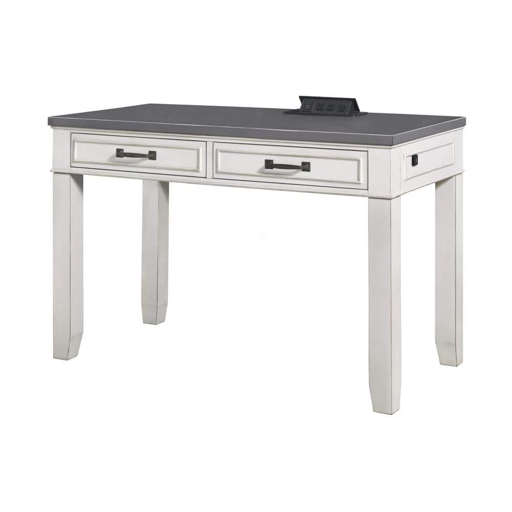 The Del Mar Desk offers in. Coastal Casual in. transitional styling to add style to your home office while providing plenty of technology and functionality. The 48-inch-wide desk offers two nicely sized drawers for storing office essentials and files. The right-side drawer features an easy-to-use biometric fingerprint lock which is perfect to keep sensitive documents, files, or other items from prying eyes or easy access. A quick touch on the pad by pre-approved users unlocks the drawer. A pop-up power bank at the back of the desk provides plenty of charging options for computers, phones, or tablets with dual USB ports and three A/C outlets. Finished in a hand painted style antique white and grey finish with just the amount of rub through or a coffee walnut finish. Weathered pewter finished pulls on the drawers warmly complements the coastal casual look.