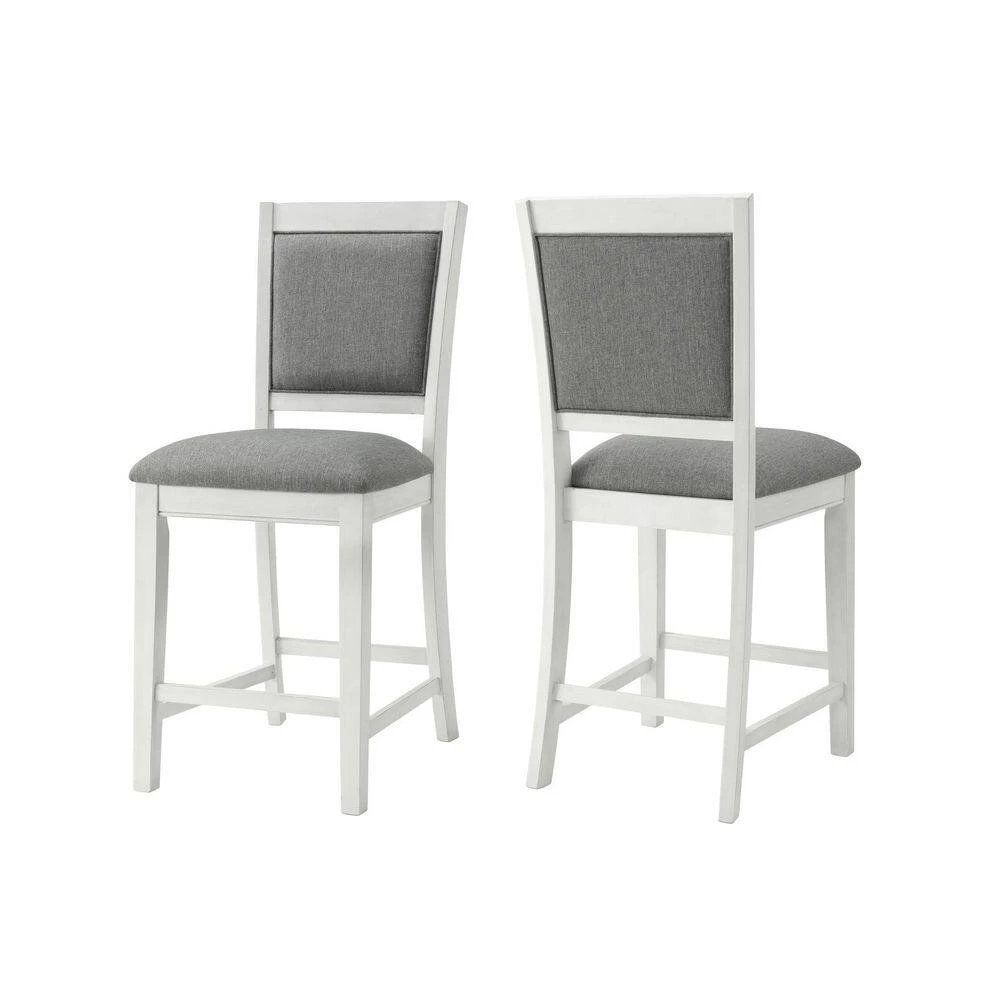 The Del Mar Pub Chairs offer a Coastal Casual styling to your dining area. The hand painted style finish on the chair frame has just the right amount of aging and rub-through in an Antique White base. A complementing grey toned linen is featured on both the seat, front and back of the chair back. Chair frame is crafted from acacia and rubberwood for long lasting use. Ships with a set of 2 pub dining chairs. Individual chair dimensions: 18.5 in. W x 21.5 in. D x 42 in. H. Made in Vietnam. Easy to assemble with all instructions, hardware and tools provided.