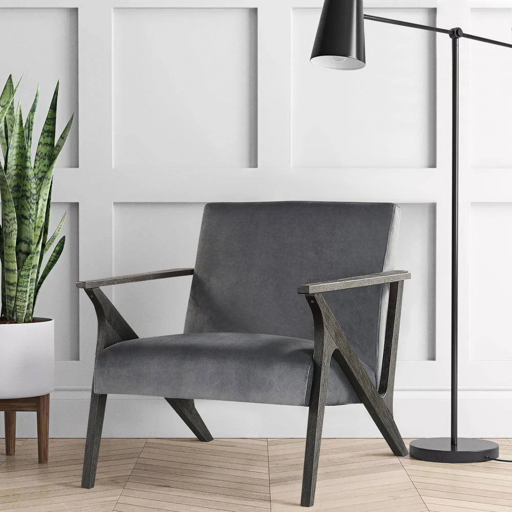 Jenson Gray Velvet Solid Wood Frame Accent Chair by EVERGLADE HOME