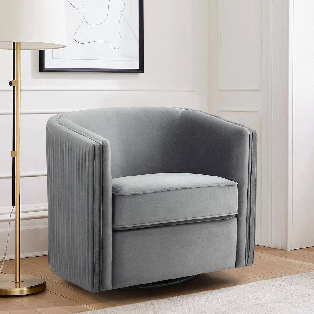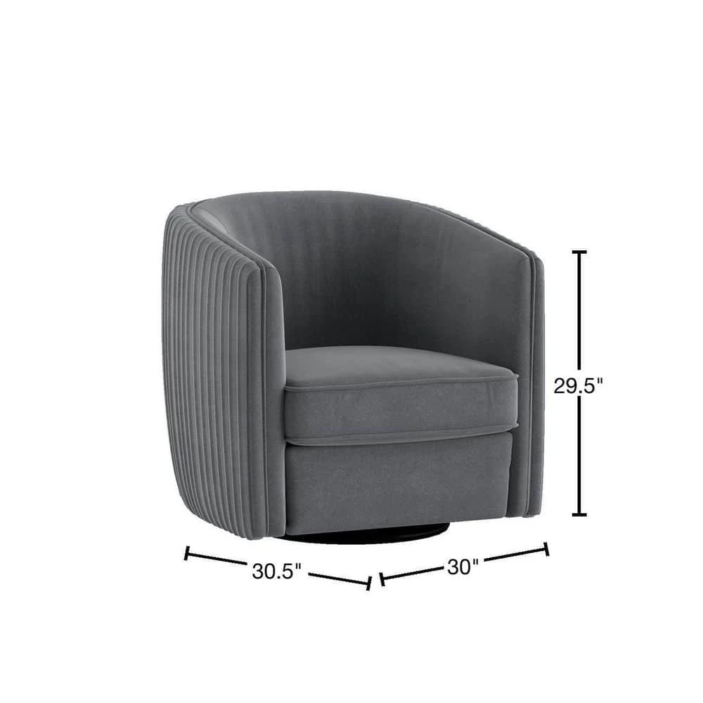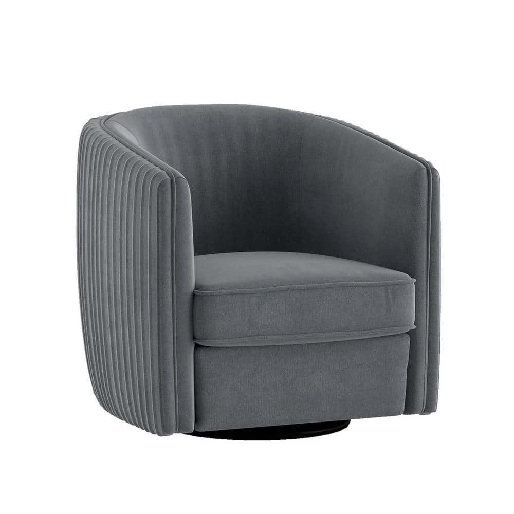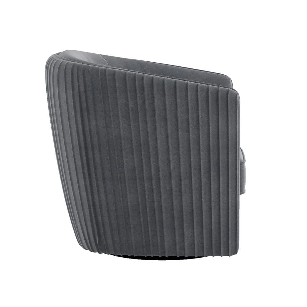 Tailored to fit your sophisticated style sense, the Kaitlyn Collection will provide the perfect spot to relax within your living space. Contoured tuxedo arms surround you while the gray velvet covering provides a soft touch. The pleated exterior framing lends visual character and classic style to your home’s decor.