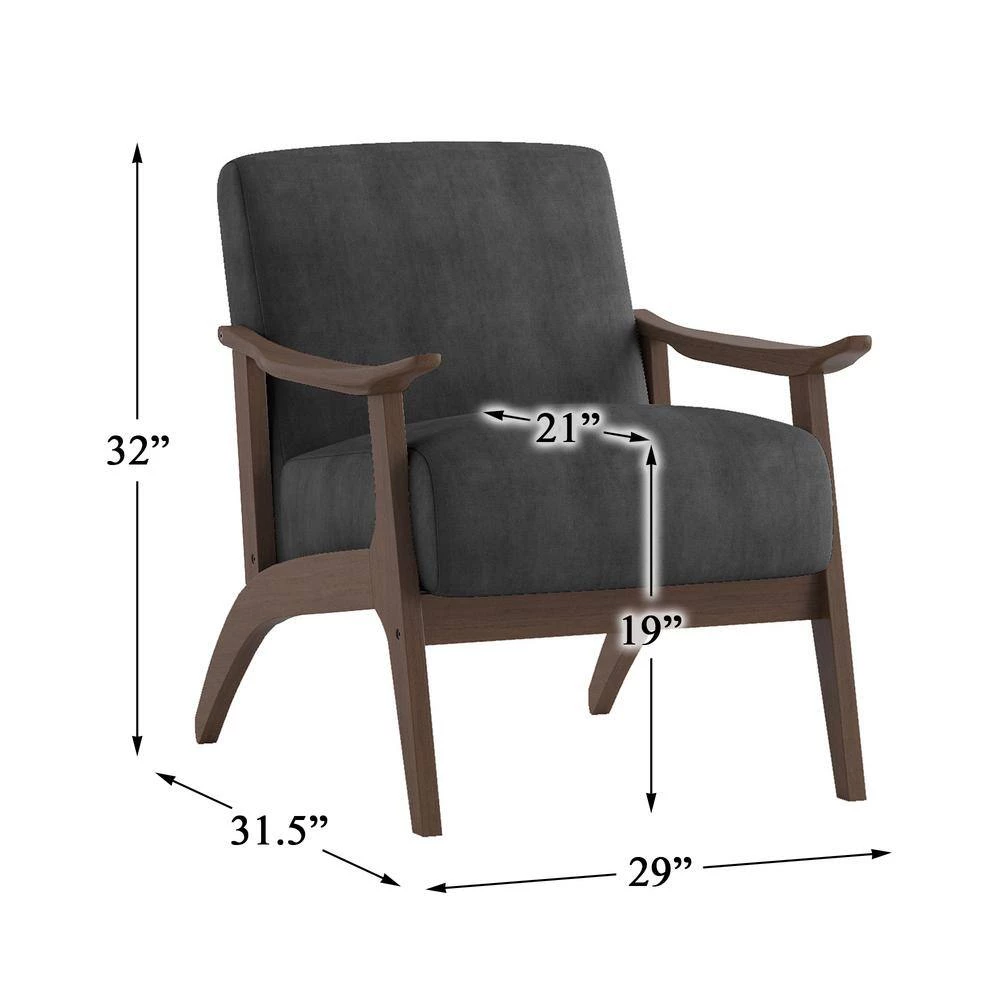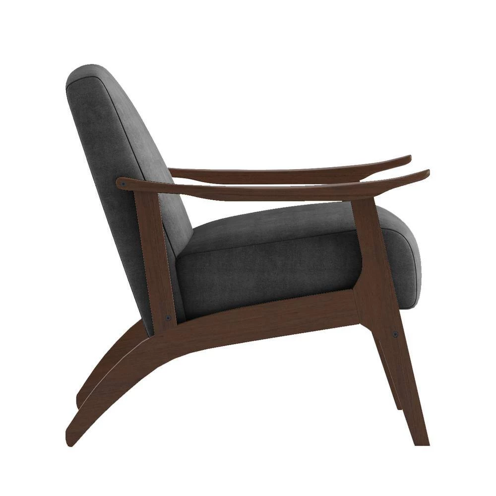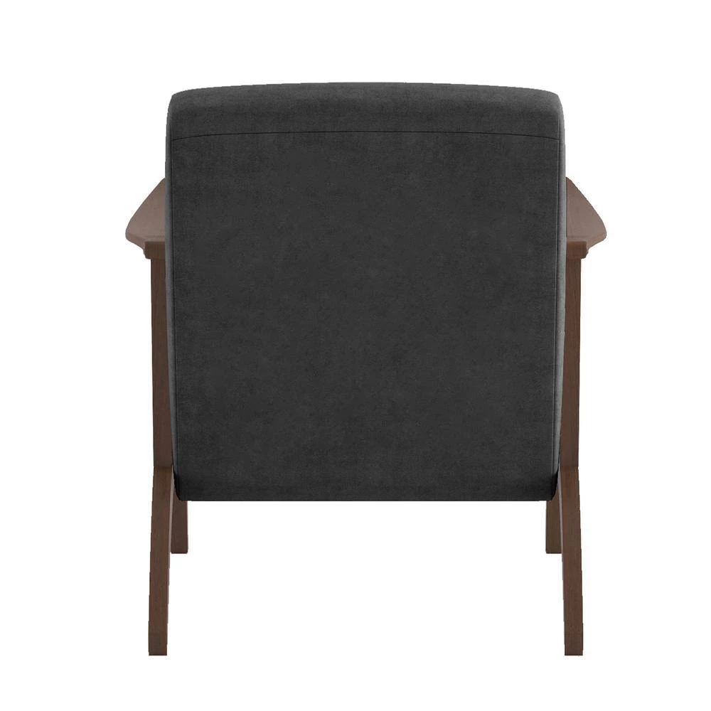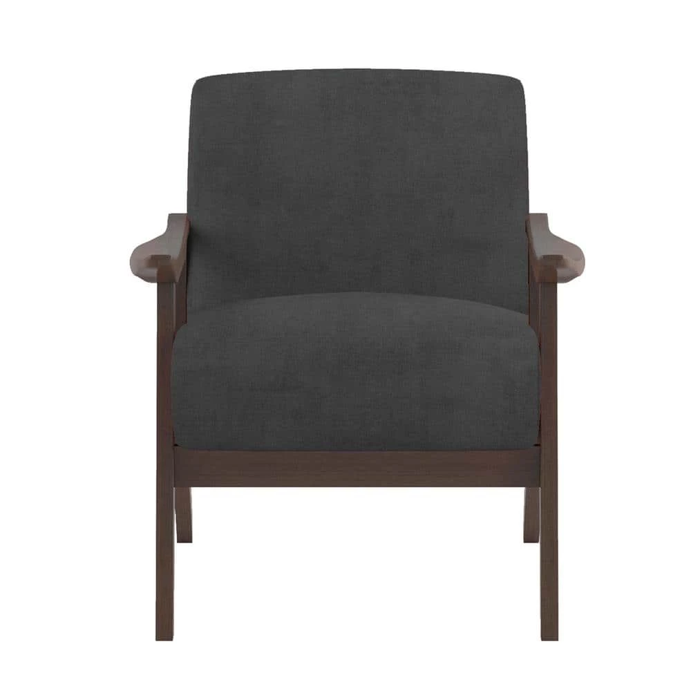 The Lonita Collection will perfectly accent your modern home decor. Streamlined angular design to the retro-inspired frame of this armchair is completed with walnut finish, presenting as a classic complement to the velvet that covers the padded chair seat and back. Offered in Blue Gray, Light Brown, Dark Gray and Orange.