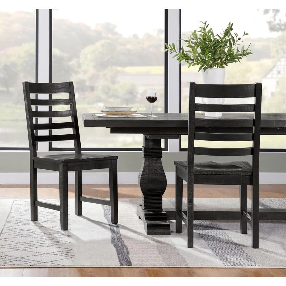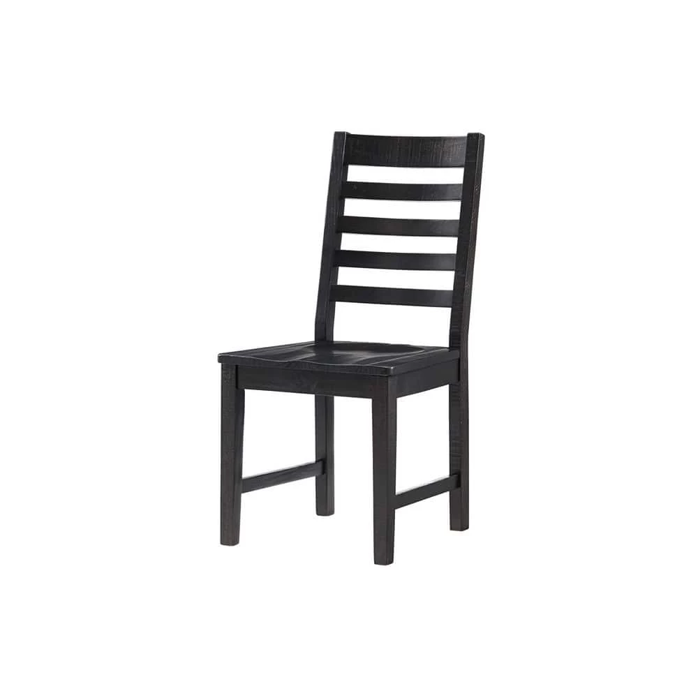 The Napa Dining Chairs offer casual and farmhouse styling to your dining area. These chairs are crafted from high quality, solid New Zealand Pine in a beautiful black finish. The ladderback style chairs also feature a saddle style seat for added comfort. Ships in a set of two (2) chairs. Individual chair dimensions: 19.5 in. W x 19 in. D x 39.5 in. H; 19 in. floor to seat height. Made in Vietnam. Easy to assemble with all instructions, hardware and tools provided.