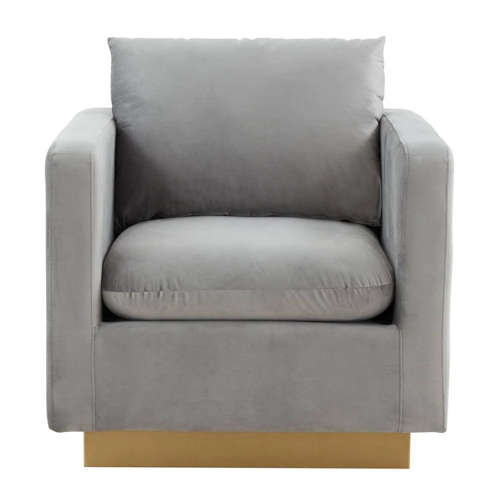 This gorgeous Nervo accent chair brings together a clean design, innovative engineering and craftmanship. A durable wood frame and Stainless steel Base are topped with thick and comfortable cushions Upholseterd in Velvet to complete your room. The foam-filled seat cushion sits on pocket springs that add support and prevent sagging over time, with enough space for you to sit comfortably with room to spare. This is a durable choice that can stay in good shape for years. It has a modern style, which brings a timeless feel to your home.