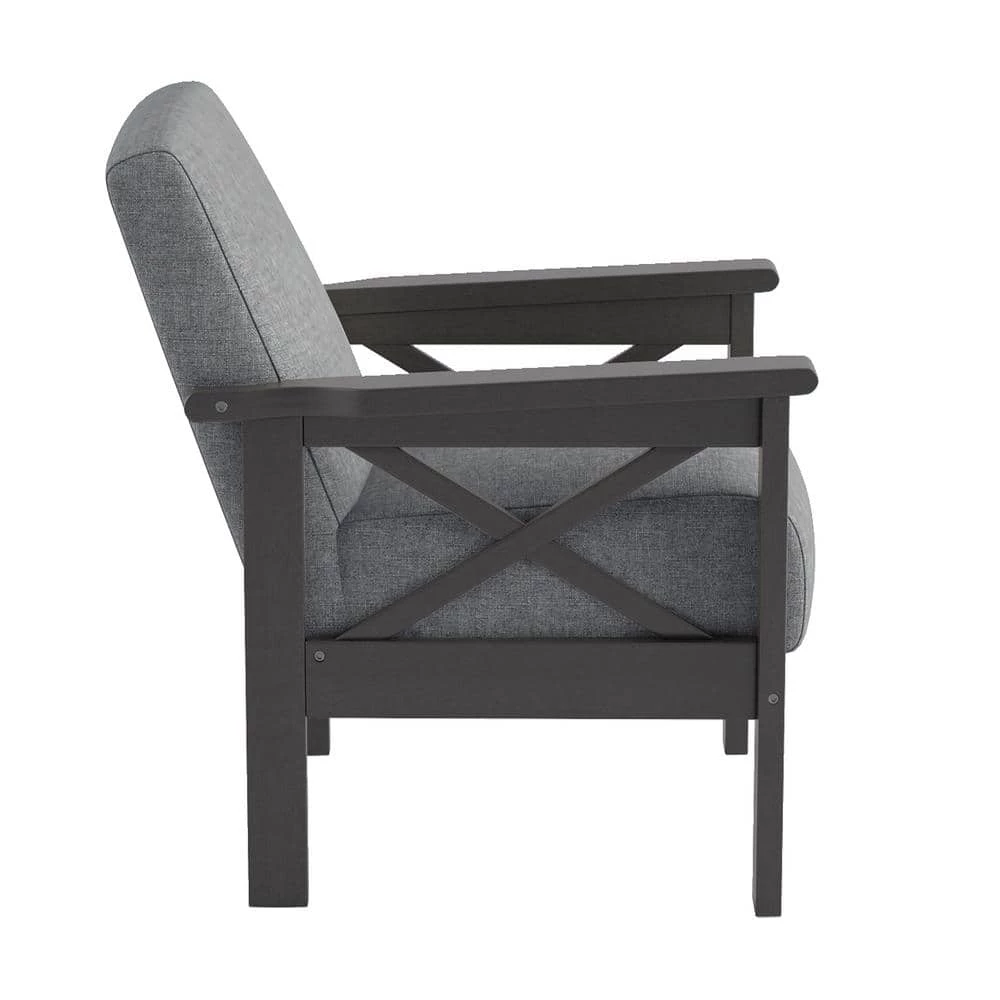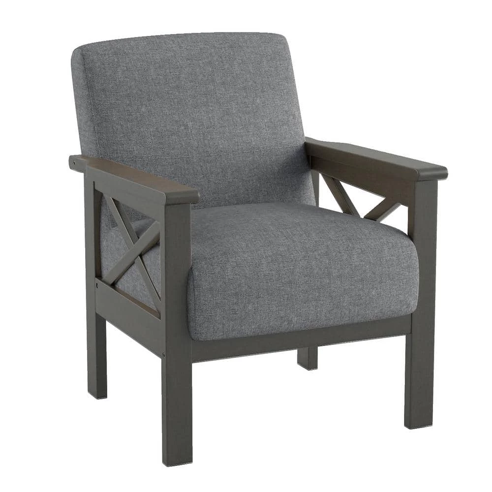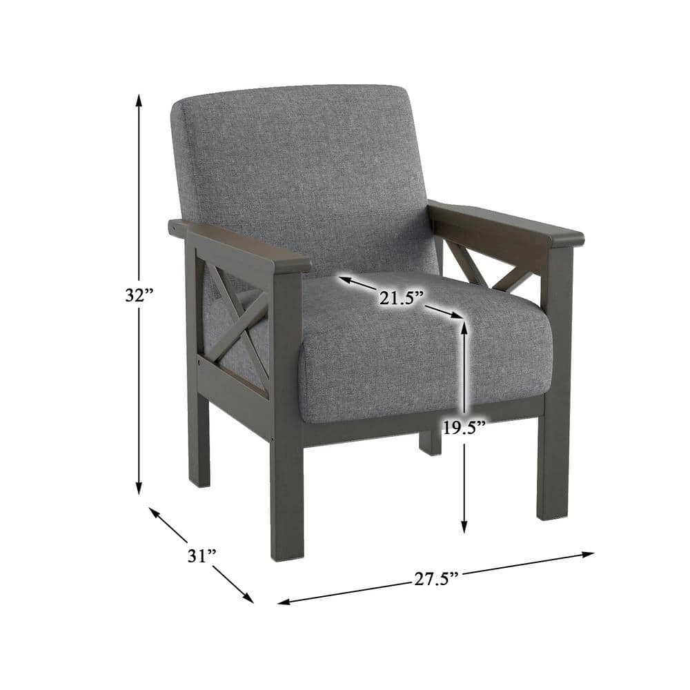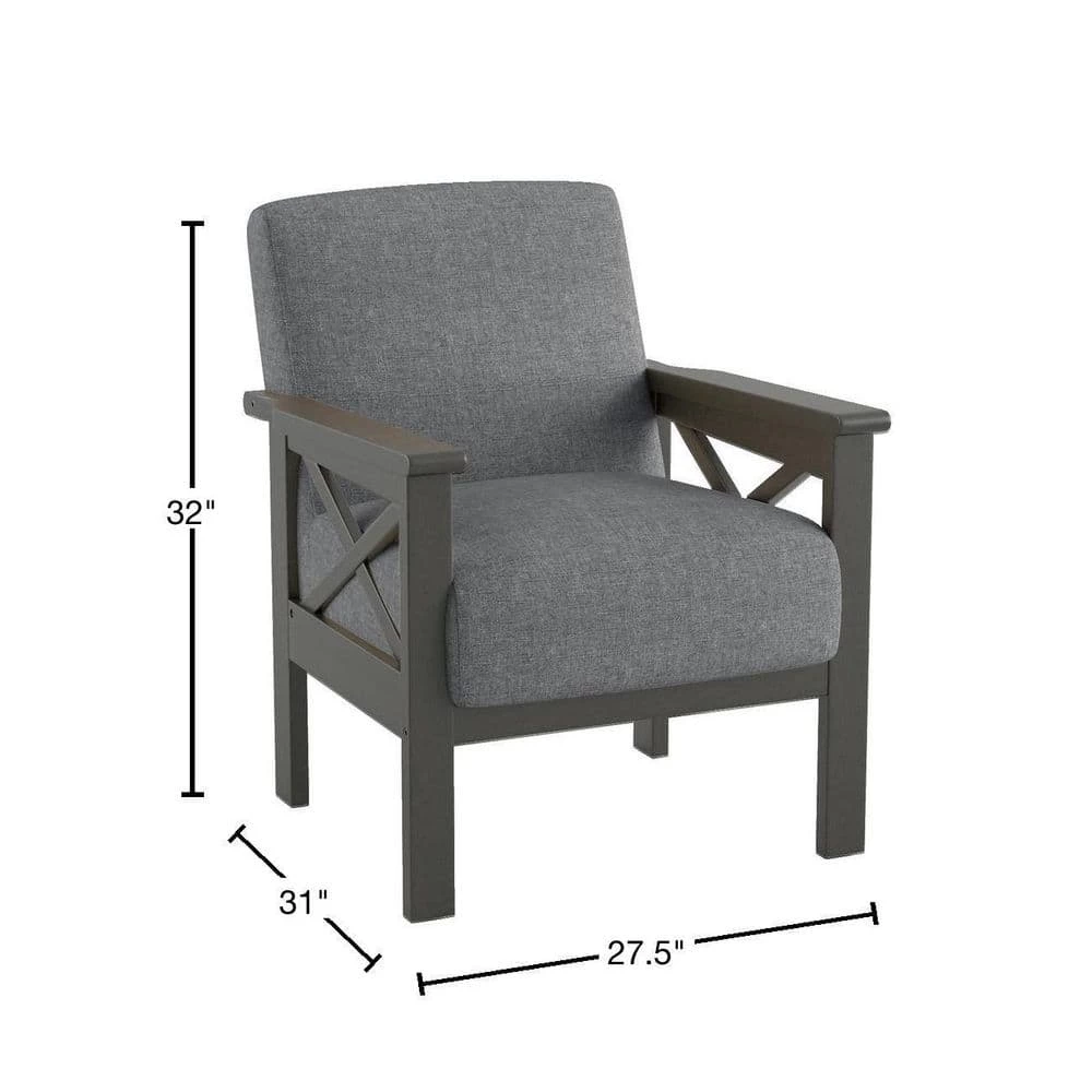 Designed with inspiration from the Arts and Crafts movement. The Savion Collection will be a classic addition to your home’s decor. The legs and X-framed wood arms are finished in an antique grey, providing complementing contrast to the various colors of textured fabric covering. Our accent chair looks great from all angles, whether in a lounge arrangement, public waiting area, or private office.