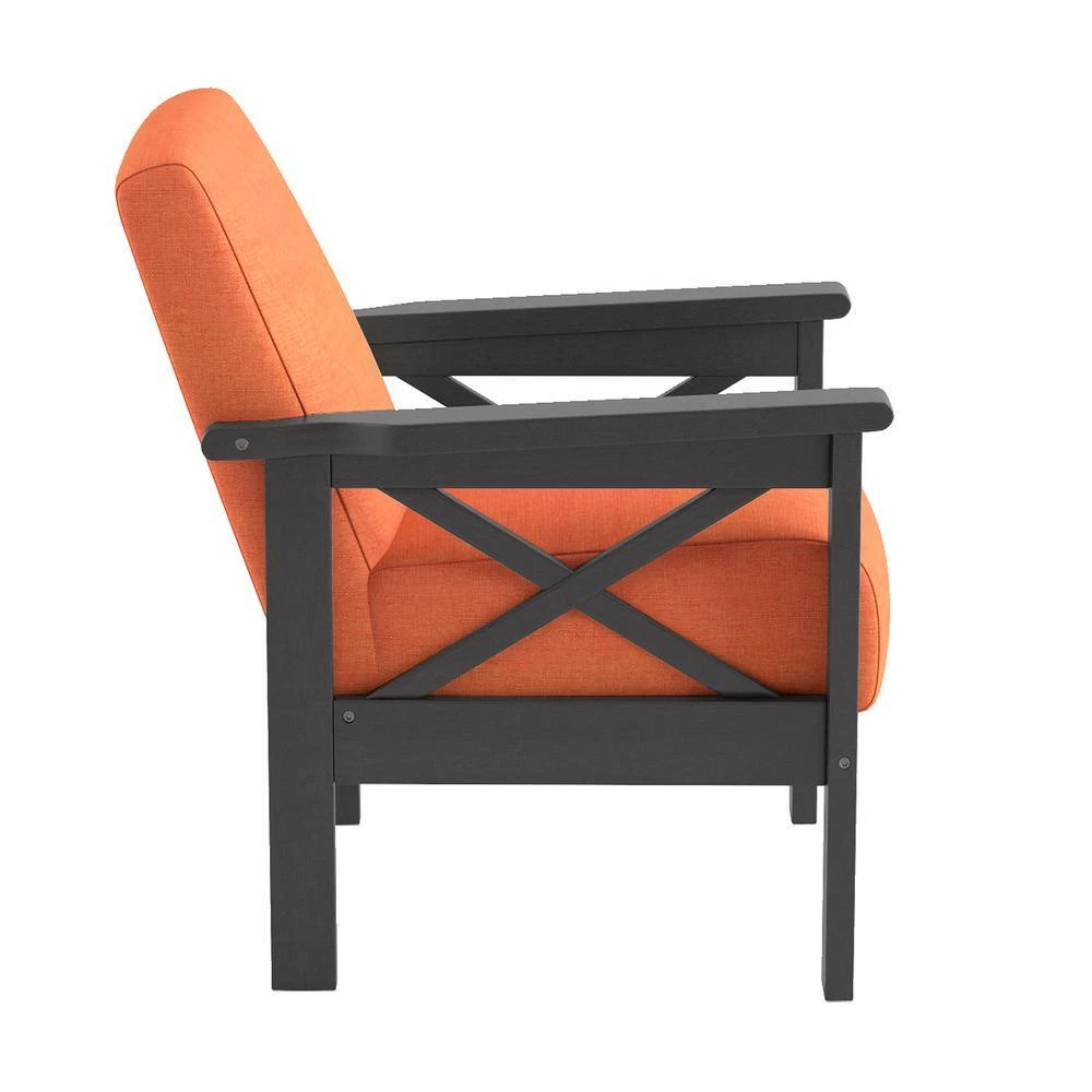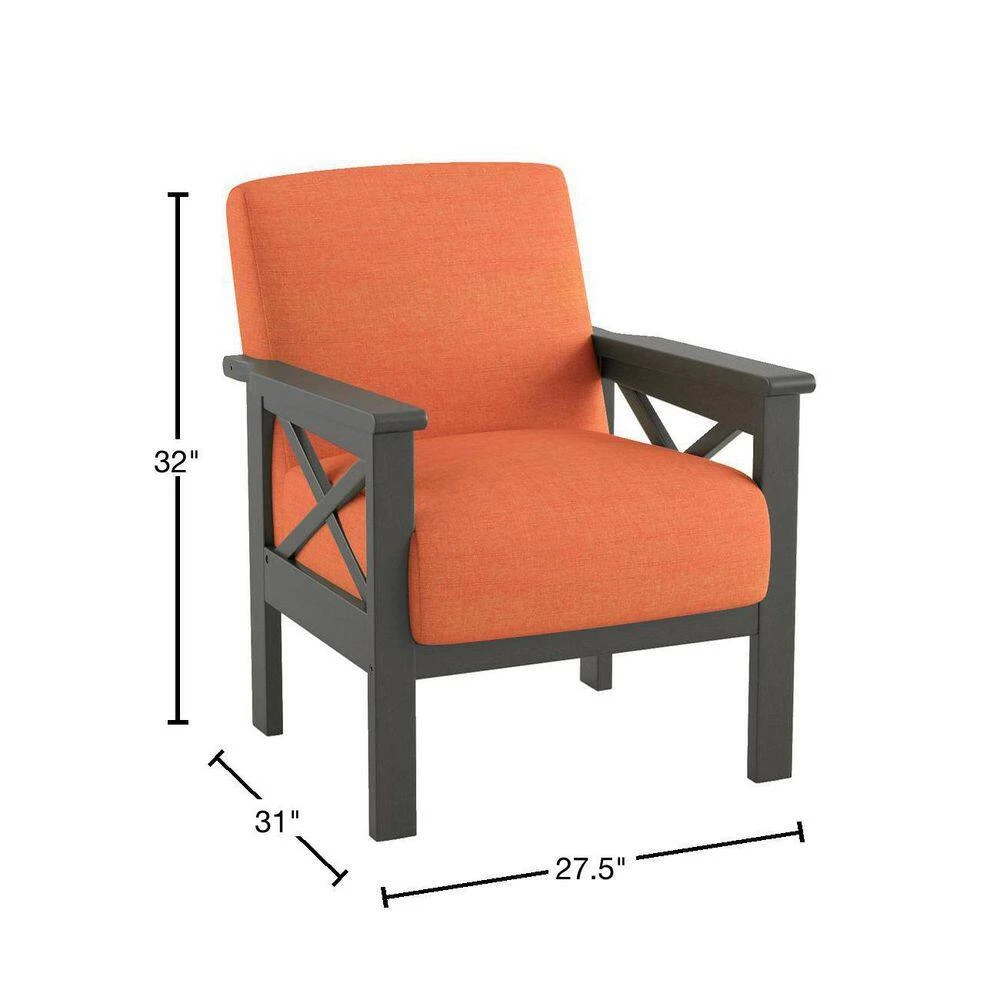 Designed with inspiration from the Arts & Crafts movement. The Savion Collection will be a classic addition to your home’s decor. The legs and x-framed wood arms are finished in an antique grey, providing complementing contrast to the various colors of textured fabric covering. Our accent chair looks great from all angles, whether in a lounge arrangement, public waiting area, or private office.
