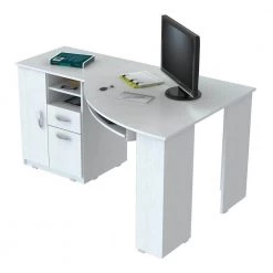 70.02 in. Washed Oak Wood 5-shelf Standard Corner Unit Bookcase with Double Door Storage by Inval