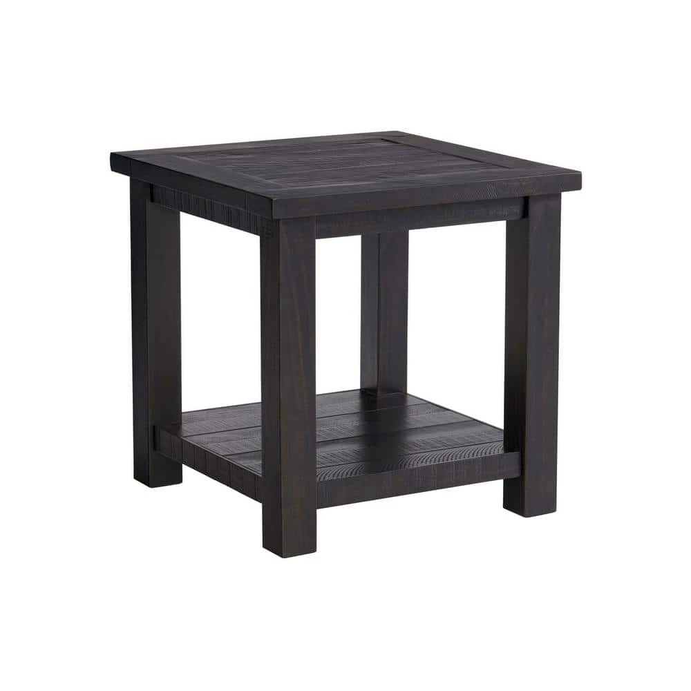 The Space Saver End Table combines modern farmhouse and casual styles into a stylish and functional table. Constructed from solid pine wood, this table is designed to last for years on end. Solid block style legs add an extra dimension to the modern farmhouse and casual look. 1-bottom shelf allows for storage space next to a sofa or chair. Additionally, this table can be used as an accent piece or as a nightstand in the bedroom. Available in either a Black Coffee or White Stain and Grey finish which also features rustic saw cuts and distressing.