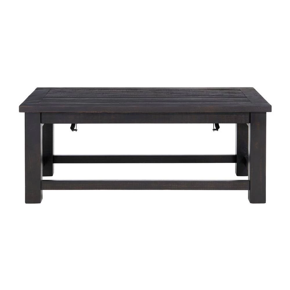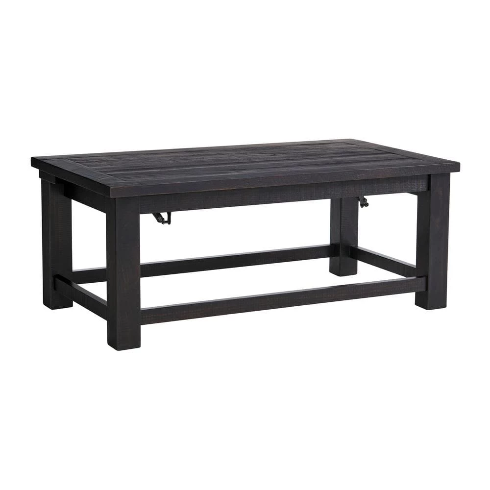 The Space Saver Lift Top Coffee Table is the perfect coffee table for those looking for both style and functionality. Not only does the top lift up to a convenient height while sitting on a sofa, it features a bench seating area. This is perfect to sit down for a meal or use it as a work space in the living or family room. Need extra space for your kids to do homework or activities. Lift the top up and lock it in place and now you have an extra table. The solid pine wood construction is designed to last for years on end. Available in either a Black Coffee or White Stain and Grey finish which also features rustic saw cuts and distressing.